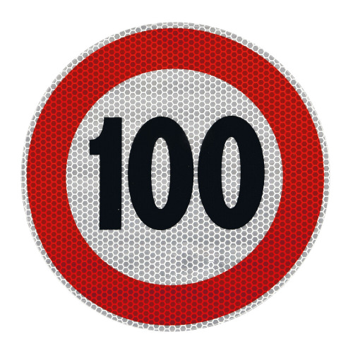 Contrassegno limite velocità - 100 Km/h. Adesivo retroriflettente omologato classe 2, conforme alle normative europee, garantisce massima visibilità e sicurezza.