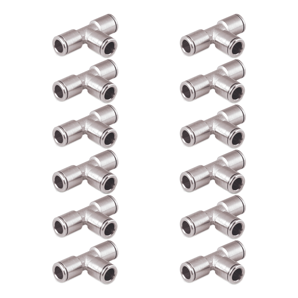 Connessioni aria compressa angolate? Nessun problema! Questo kit include 12raccordi rapidi a -T- in metallo, 3pz per ognimisura, perfetti per tubi di dimensioni (6mm, 8mm, 10mm, 12mm di diametro esterno). Soluzione rapida, affidabile e flessibile. Offerta speciale!