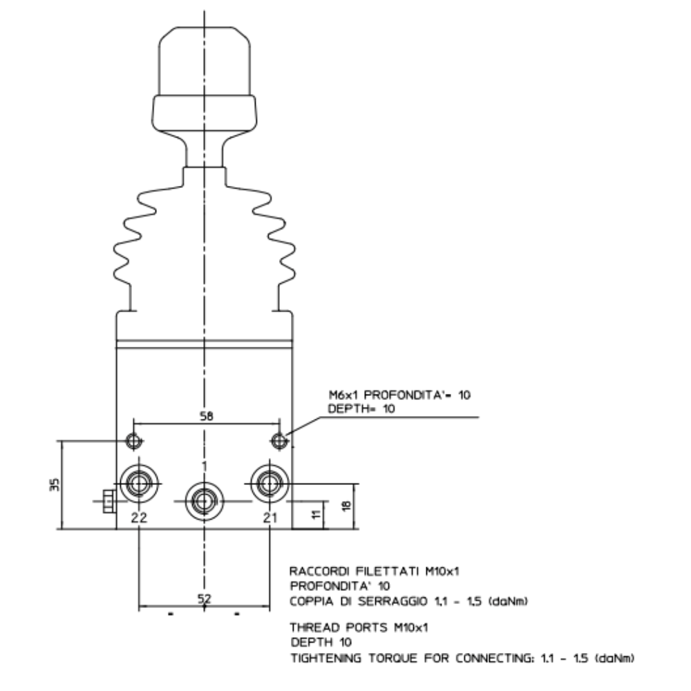 La valvola distributore BERTOCCO D138 0000 a 2 vie è un componente di alta qualità progettato per sistemi idraulici che utilizzano aria come fluido di lavoro. Ideale per il controllo di applicazioni come il sollevamento (TIP) e l'abbassamento (LOW) di cassoni ribaltabili, questa leva di comando garantisce precisione e affidabilità. Con una pressione operativa massima di 12 bar e un intervallo di temperatura di lavoro da -40°C a +80°C, è costruita per resistere a condizioni ambientali difficili. Il design include un ritorno automatico in posizione STOP per maggiore sicurezza e facilità d'uso , e richiede un'azione di tiro per l'azionamento e il rilascio. I raccordi filettati M10x1 assicurano una connessione sicura con una coppia di serraggio consigliata di 1.1-1.5 daNm. La valvola è dotata di porte di alimentazione (IN), scarico, e due porte di utilizzo (21 per abbassamento e 22 per sollevamento).